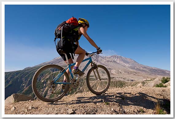 Jane Vitkuske mountain biking in Mt. St. Helens National Monument, WA