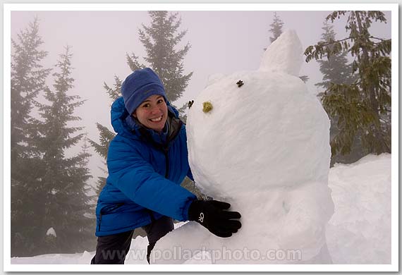 Anna Alonzo and a Hello Kitty snow sculpture, Cascades, WA