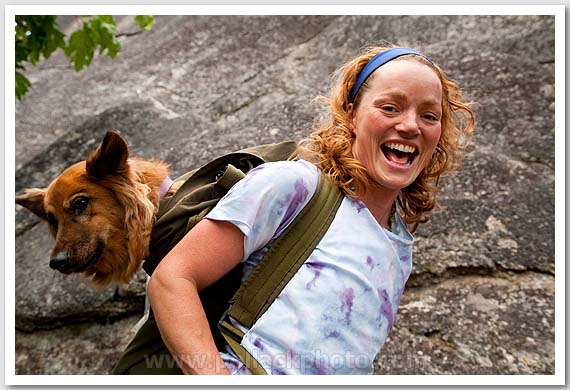 Hillarie Luther packing Charlie, Clem's Holler area, Tumwater Canyon, WA