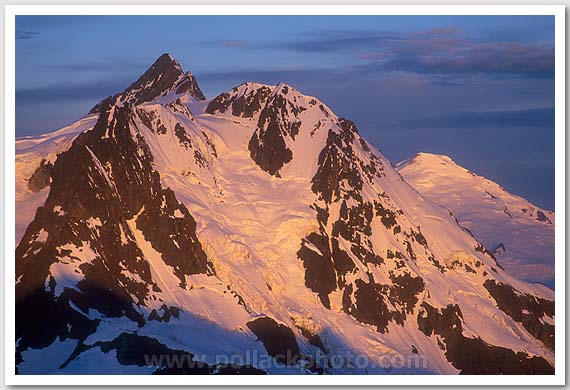 Mt. Shuksan at sunrise with Mt. Baker behind, North Cascades, WA