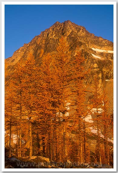Black Peak and larches at sunrise, North Cascades, WA