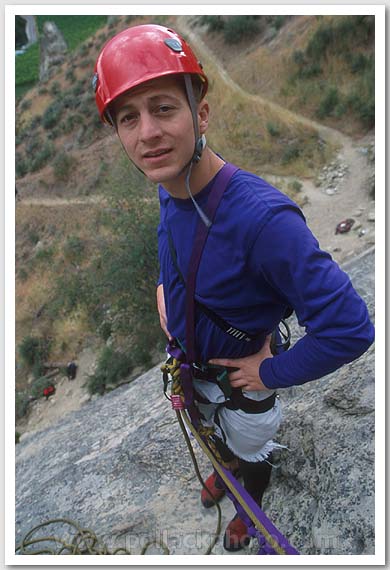 Dave Ruf at a belay on Peshastin Pinnacles, Leavenworth, WA