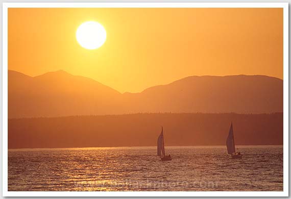 Two sailboats and a golden sun, Golden Gardens Park, Seattle, WA