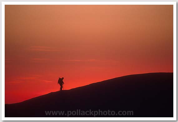 Snowshoer silhouetted against post-sunset sky, Mt. Rainier National Park, WA