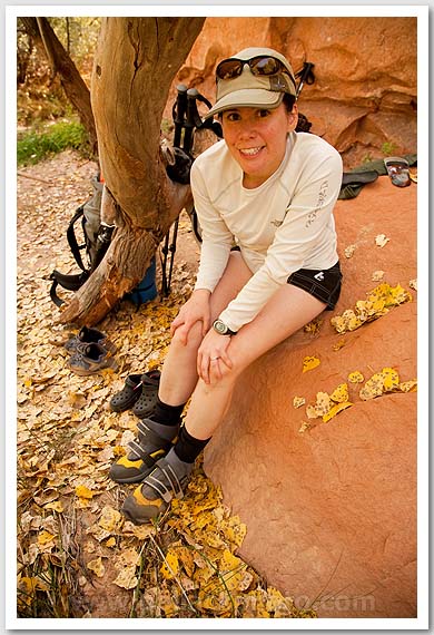 Anna Alonzo preparing to wade the Escalante River, Grand Staircase-Escalante National Monument, UT
