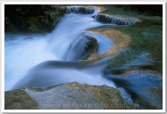 Water pouring over travertine ledges, Havasu Canyon, AZ