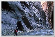 Hiking up into The Narrows of the Virgin River is a highlight experience in Zion National Park. As you pick your way up the riverbed itself, wading through the river, the towering walls of the broad canyon close in to form a narrow gorge, over a thousand feet deep. It's unlike any hike I had done before. Also, check out the newer second gallery. |
