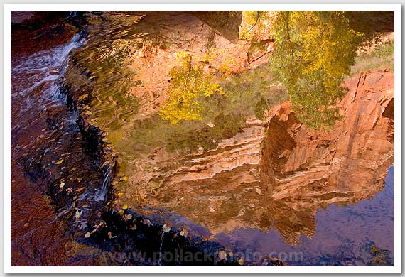 Reflection of canyon walls in the Left Fork River, Zion National Park, UT