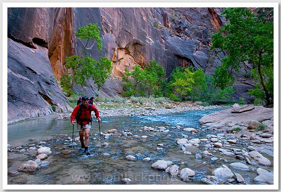 Steve Matera hiking up the Virgin River, Zion National Park, UT